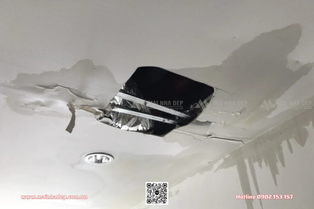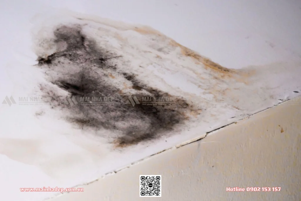 Nếu bạn thấy vết ố màu vàng nâu, vết nước lan rộng, hoặc sơn bị phồng rộp, đây là dấu hiệu rõ ràng cho thấy mái đã bị dột. Nếu để lâu, trần thạch cao có thể bị mục hoặc sụp đổ.