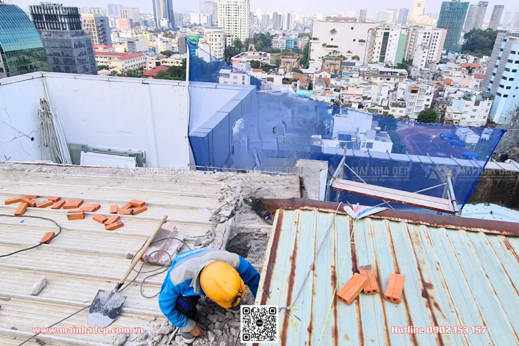 Dự án nâng cấp mái tôn tòa nhà Công ty 59 – Bộ Quốc Phòng tại 9 Đinh Tiên Hoàng, Quận 1, TP. Hồ Chí Minh được thi công bởi Mái Nhà Đẹp. Công trình sử dụng vật tư chất lượng cao, cải tạo toàn diện hệ mái, tăng khả năng chống nóng, chống dột…