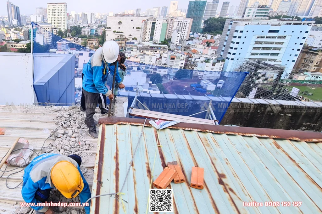 Dự án nâng cấp mái tôn tòa nhà Công ty 59 – Bộ Quốc Phòng tại 9 Đinh Tiên Hoàng, Quận 1, TP. Hồ Chí Minh được thi công bởi Mái Nhà Đẹp. Công trình sử dụng vật tư chất lượng cao, cải tạo toàn diện hệ mái, tăng khả năng chống nóng, chống dột và đảm bảo an toàn, thẩm mỹ cho môi trường làm việc bền vững, chuyên nghiệp.